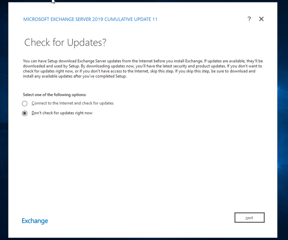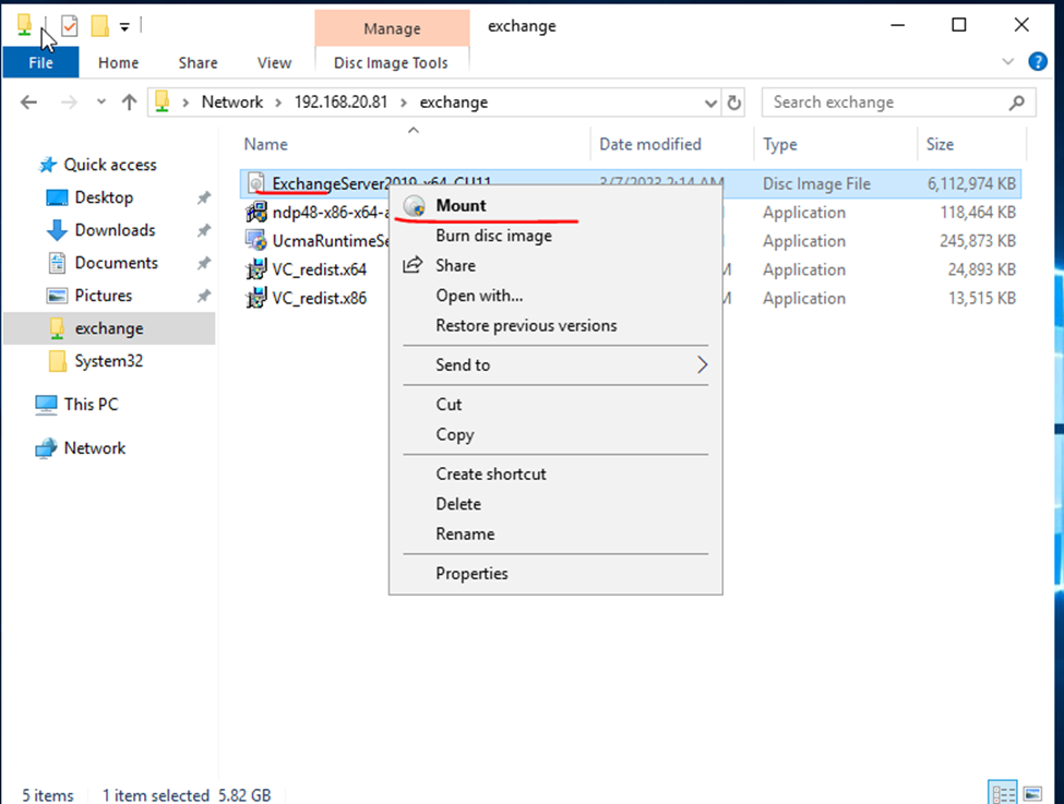 We will be using the Exchange Server itself to prepare the Active Directory.