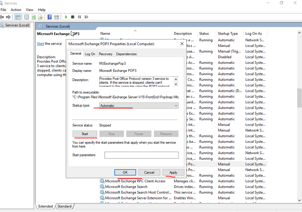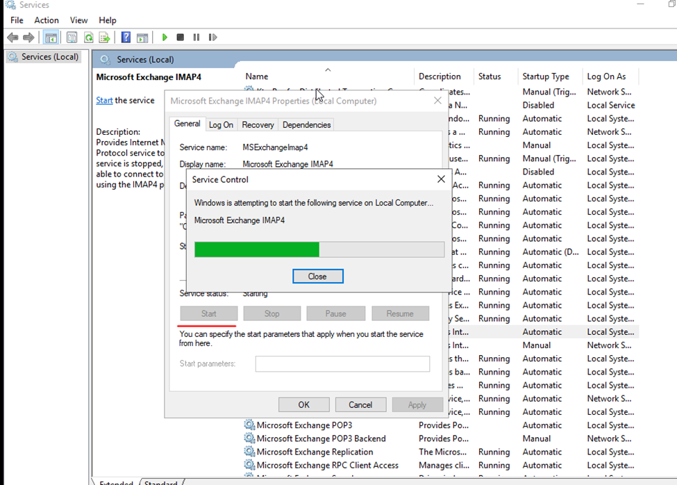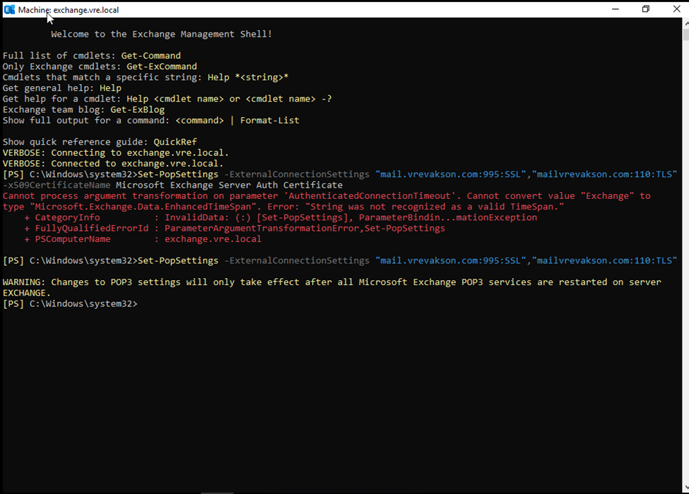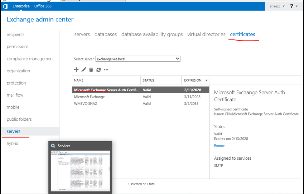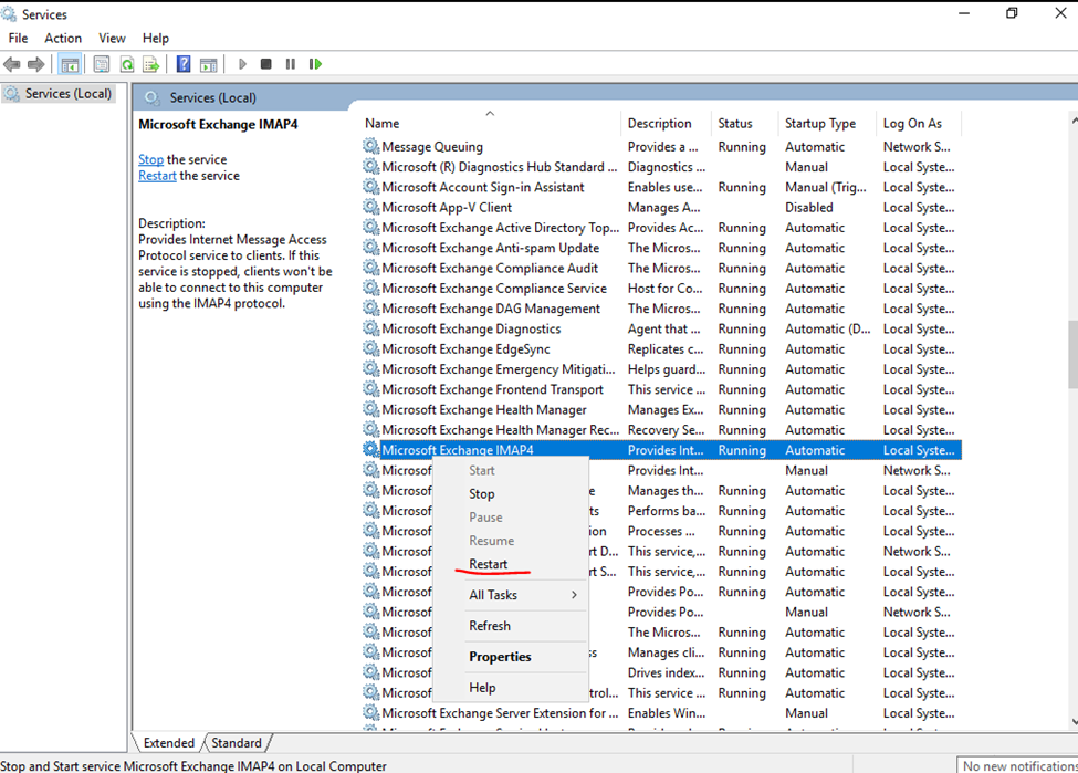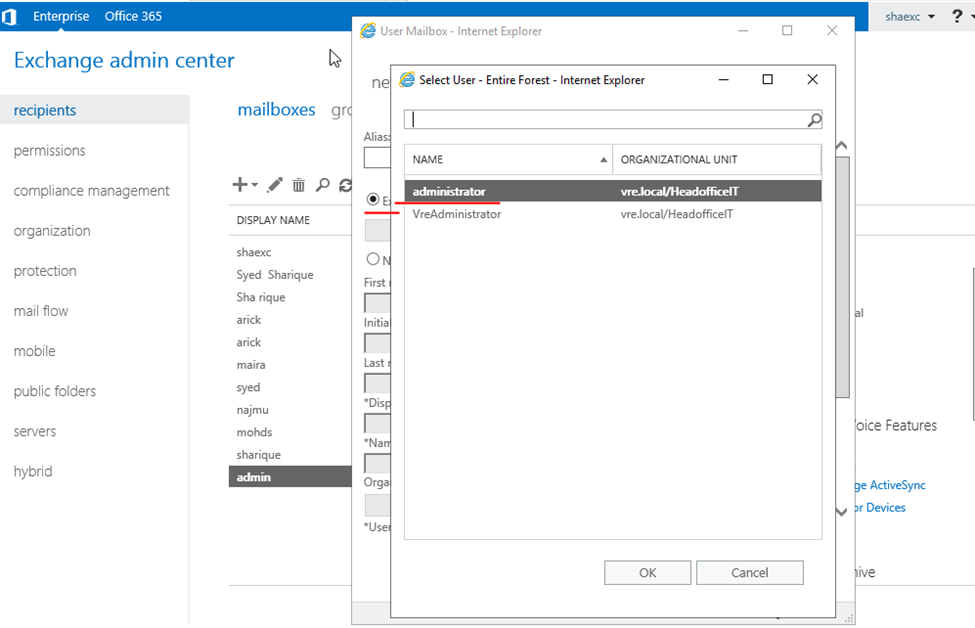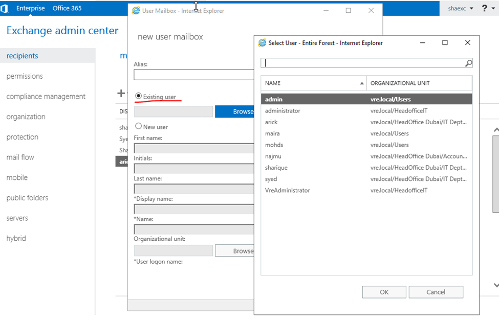 Exchange server pc should be connected to Domain Controller with Domain Controller user with required permission.