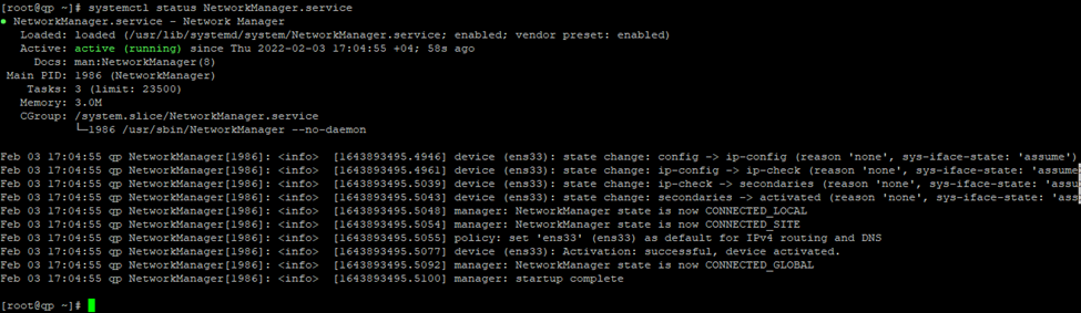 [root@qp ~]# systemctl Restart NetworkManager.service