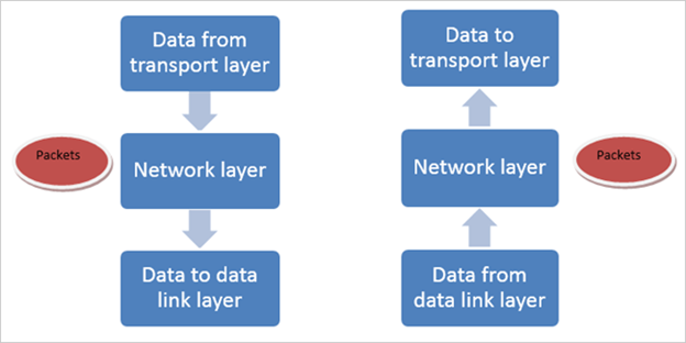 The IP addressing is a connectionless service, thus the layer -3 provides a connectionless service. The data packets are sent over the medium without waiting for the recipient to send the acknowledgment. If the data packets which are big in size are received from the lower level to transmit, then it splits it into small packets and forwards it.