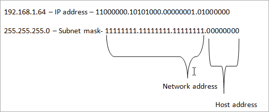 - Example: For the IP address 192.168.1.1. The network address will be 192.168.1.0 and the host address will be 0.0.0.1.