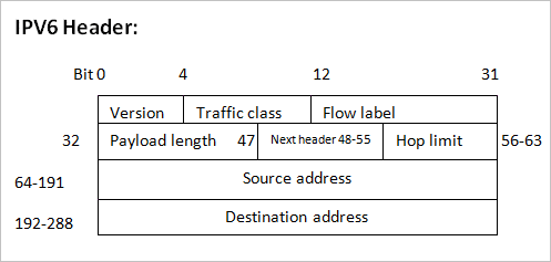- Hop limit: This is of 8 bits and is used to prohibit the data packet to loop in infinity in the system. This works similarly to TTL as in the IPv4 header. At each hop, the value of the hop limit is degraded to 1 and when it reaches zero, the packet is disowned.