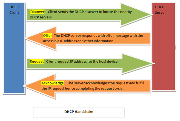The clients having DHCP feature enabled, broadcast the discovery message to the DHCP server when they first connect to a network and request for configuration data for the network with which they are connected with. The DHCP server acknowledges the request and responds to it with the desired IP details with an offer message.