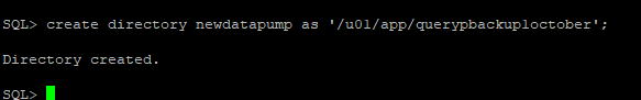 SQL> create directory newdatapump as ‘/u01/app/querypbackup1october’;
