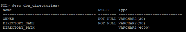 SQL> desc dba_directories;