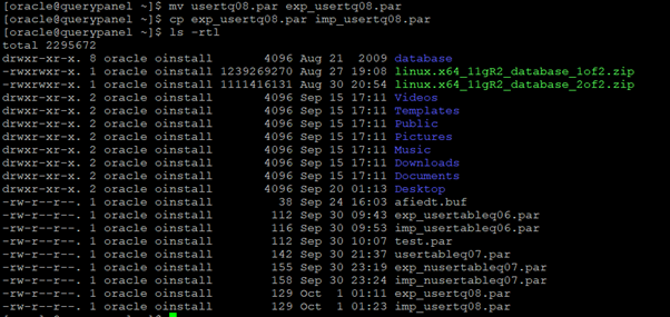 [oracle@querypanel ~]$ mv usertq08.par exp_usertq08.par