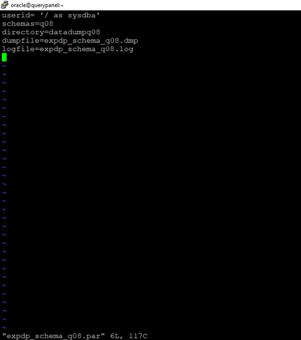 [oracle@querypanel ~]$ vi expdp_schema_q08.par