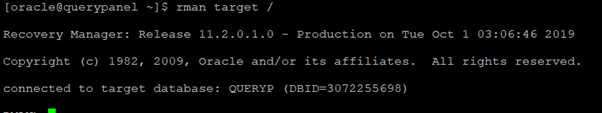 [oracle@querypanel ~]$ rman target /