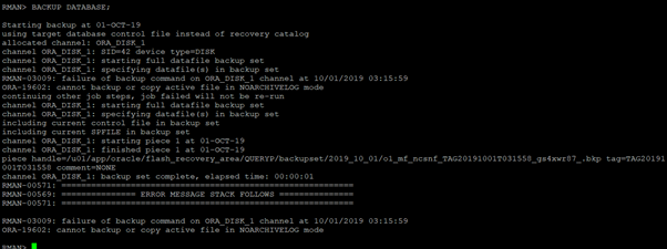 RMAN> BACKUP DATABASE;