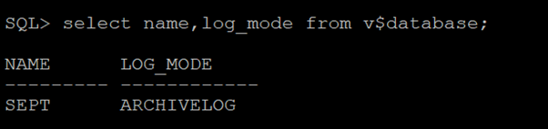 SQL> select name,log_mode from v$database;
