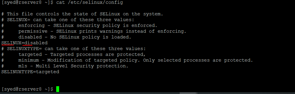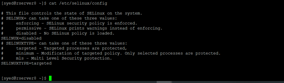 [syed@rserver8 ~]$ cat /etc/selinux/config