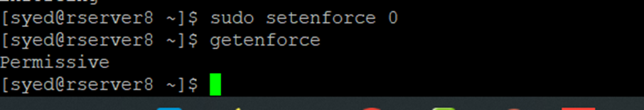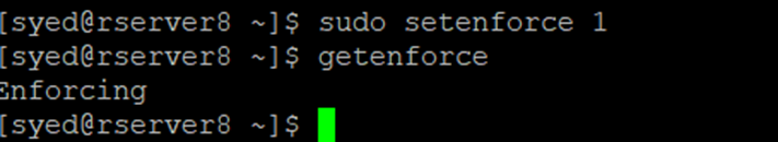 [syed@rserver8 ~]$ getenforce
