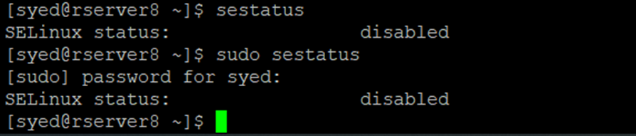 [syed@rserver8 ~]$ sudo sestatus