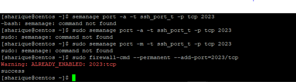 semanage port -a -t ssh_port_t -p tcp 2023