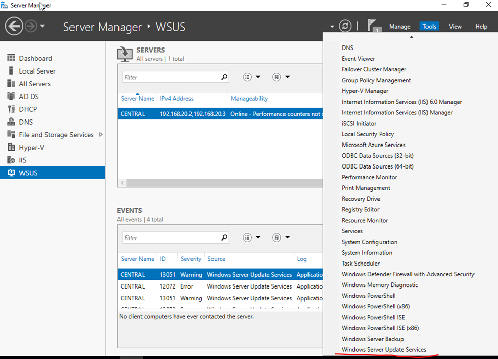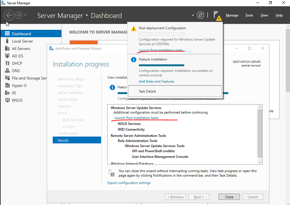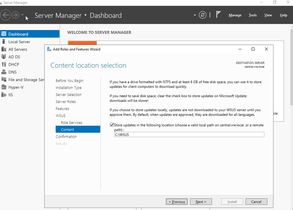 install and configure WSUS (Windows Server Update Services) on Windows Server 2019.