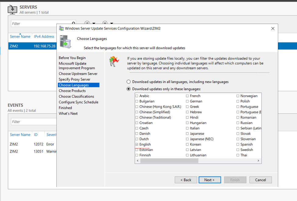Choose Languages screen, click Download updates only in these languages. Check English and any other additional language you wish to download updates