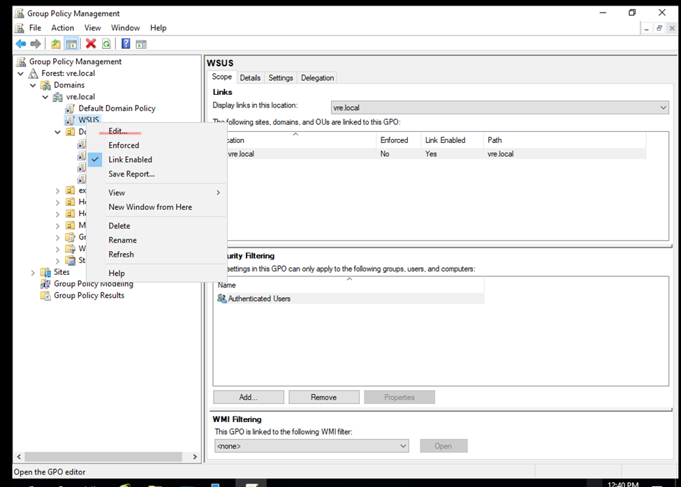 Once created Group policy click to edit once edited – you will redirect to GPO EDIT Windows