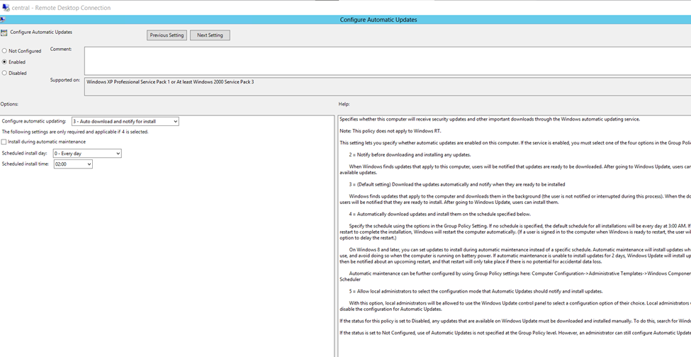 The idea behind this is to ensure the client computers contact the specified intranet server instead of downloading updates from internet. Unless you configure this policy setting, the client computers